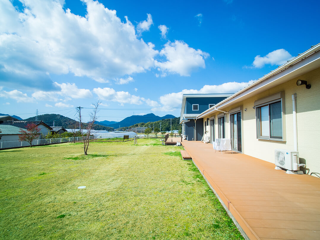 デイサービスおかげさんは、周囲を豊かな自然に囲まれており、四季の移ろいを鑑賞しながら日光浴やおしゃべり、散歩なども楽しめます。ご利用者様、ご家族、地域の人が心から本当に「おかげさん」と思えるような介護施設となるよう心を尽くしてまいります。